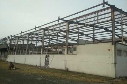 - gudang yang sudah tidak layak kontruksi lagi muat dengan banyak barang